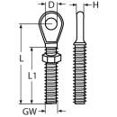 Auge mit Linksgewinde Edelstahl A4 M8, inkl. Mutter 5 Stück
